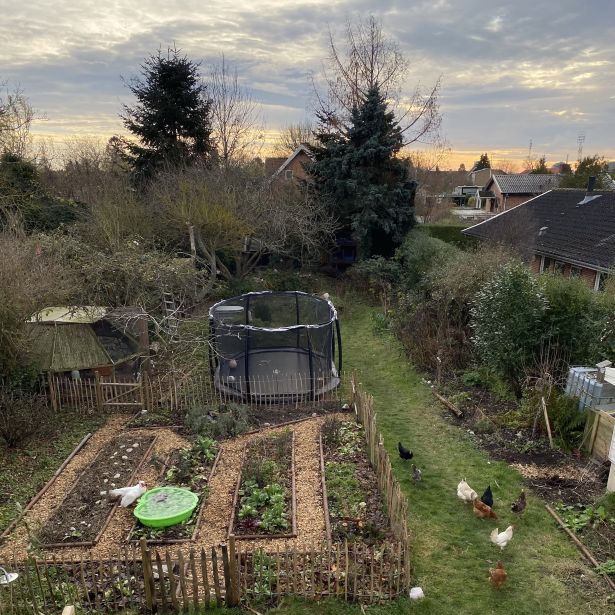 Da beslutningen først var taget, blev sommerferien i Sverige aflyst, og i stedet kastede familien sig ud i projektet med at etablere en køkkenhave – eller en ”grøntsagsmark”, som Lene selv kalder det. Siden er der blevet føjet nye dele til haven, så den i dag også er hjem for vilde områder, høns, ænder, eng, bålsted og meget andet.